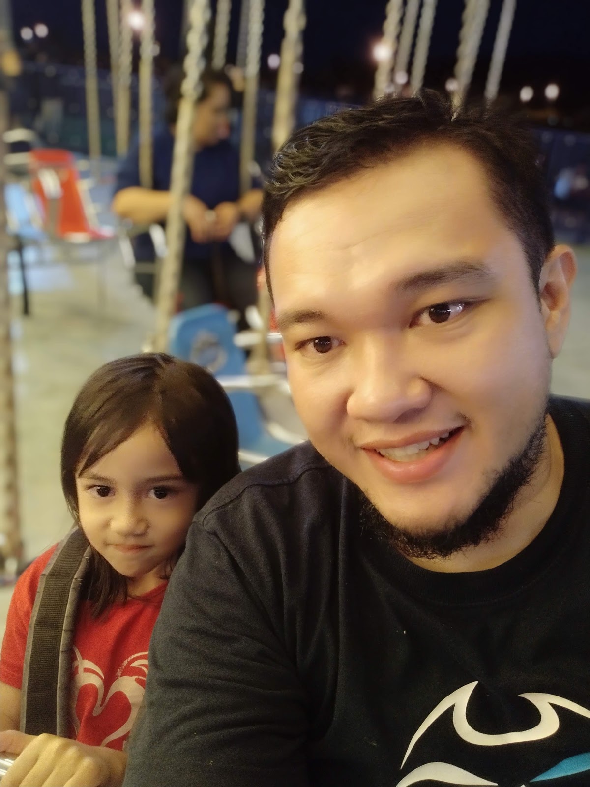 Ni je la gambar berdua. Tu pun dukung kakak meni belakang, adik letak bawah jap, lepas selfie dia minta dukung. menitik-nitik peluh abahnya kat sini. haha.